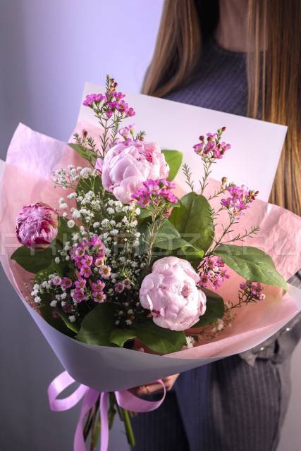 Пионы - однозначно фавориты летнего сезона. Пион может быть как единичным акцентом в букете, так и основным цветком. Выбирая этот цветок, Вы получите нежный и пышный букет, а наши флористы Вам в этом с удовольствием помогут. Круглосуточная доставка по Владивостоку и Находке.