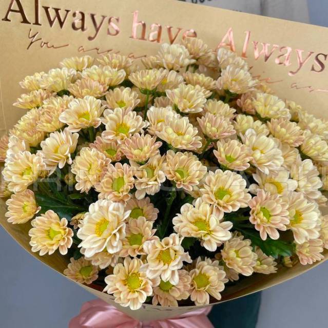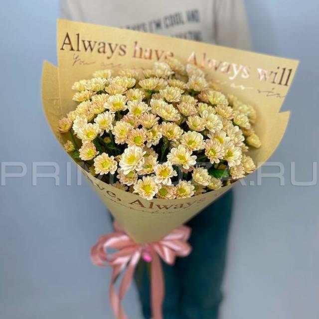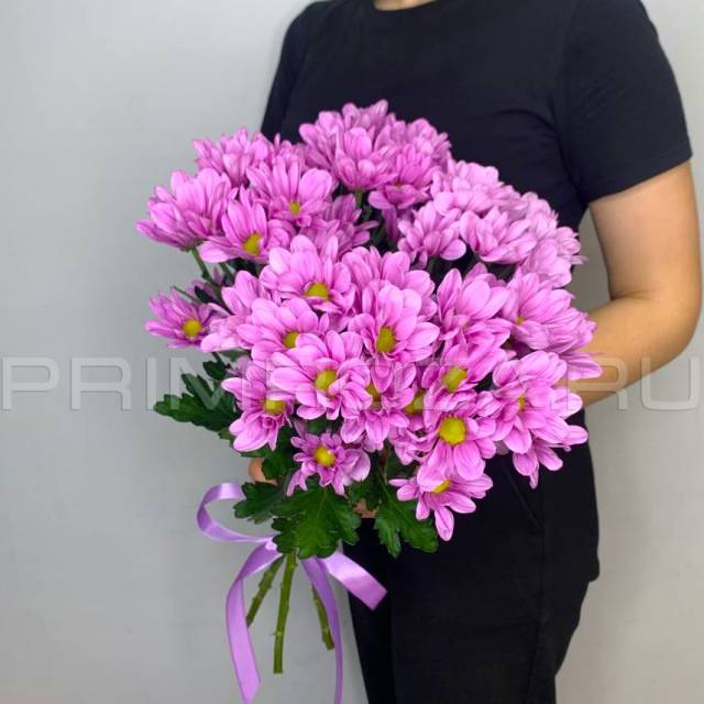 Bouquet - compliment of 5 PCs. camomile chrysanthemums. Decoration satin ribbon. Colors can vary based on the availability of flowers. The product availability check with the consultant. Will be happy to answer all your questions.
