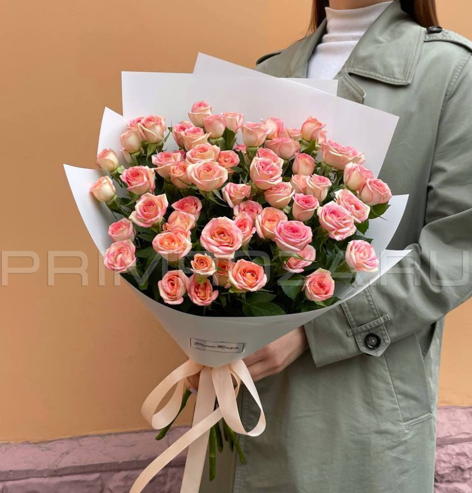 ATTENTION: the shade of bush roses and packaging material may differ from the photos on the website.The overall color scheme of the bouquet will remain unchanged.