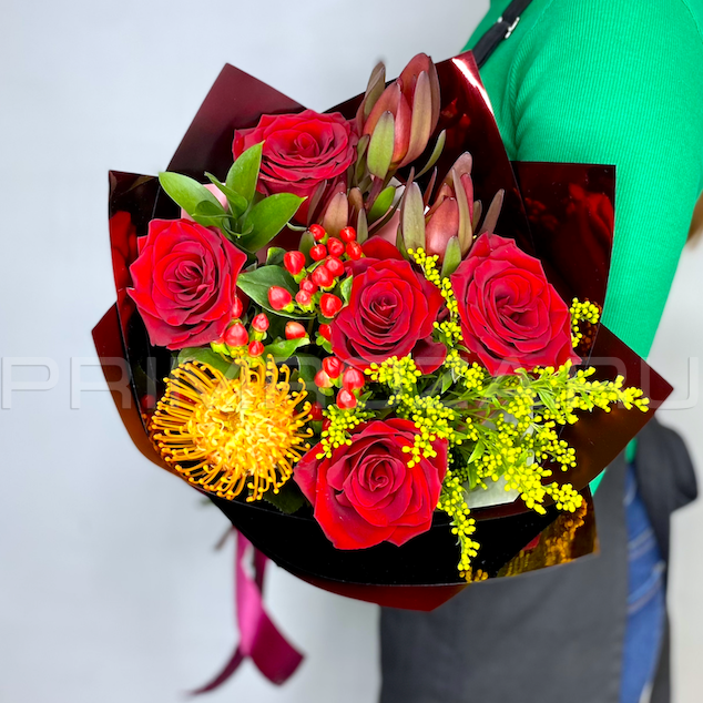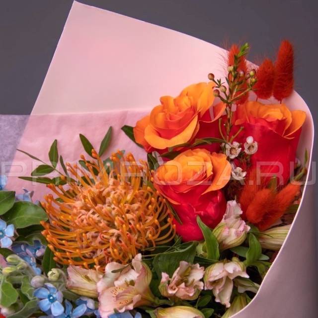 Каждая изготавливаемая флористом цветочная композиция является уникальной и может отличаться внешним видом, размером и оттенками цвета. Также возможны замены по ассортименту и составу цветов в зависимости от сезонности, наличия цветов и других факторов. Каждая цветочная композиция составляется из свежих цветов, и флористы стремятся к максимальному соответствию цветочной композиции иллюстрации на Сайте.